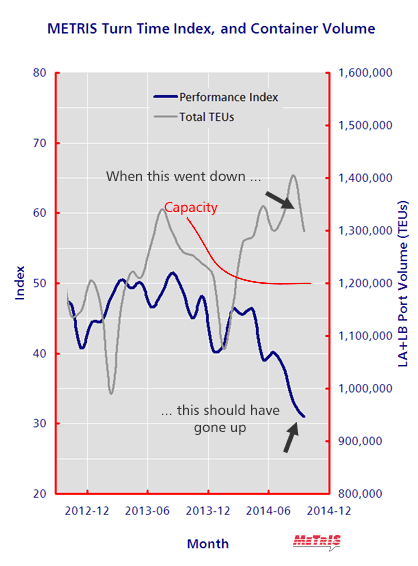 The data indicate that what's happened in the past few months is that the ports have reached their saturation capacity. A greatly diminished capacity compared with even the recent past. But there have been no new significant generators of delay for 6 months, and current performance issues are attributable almost entirely to container volume. Bear in mind that September trade was the 4th highest on record.